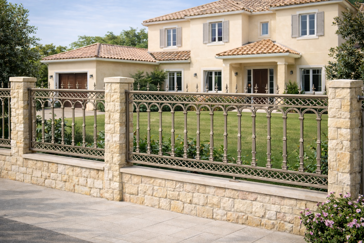 Τα κάγκελα από αλουμίνιο μπορούν να συνδυαστούν με αυλόπορτες, προστατευτικά παράθυρων (καμπυλωτά και ίσια) κλπ.
