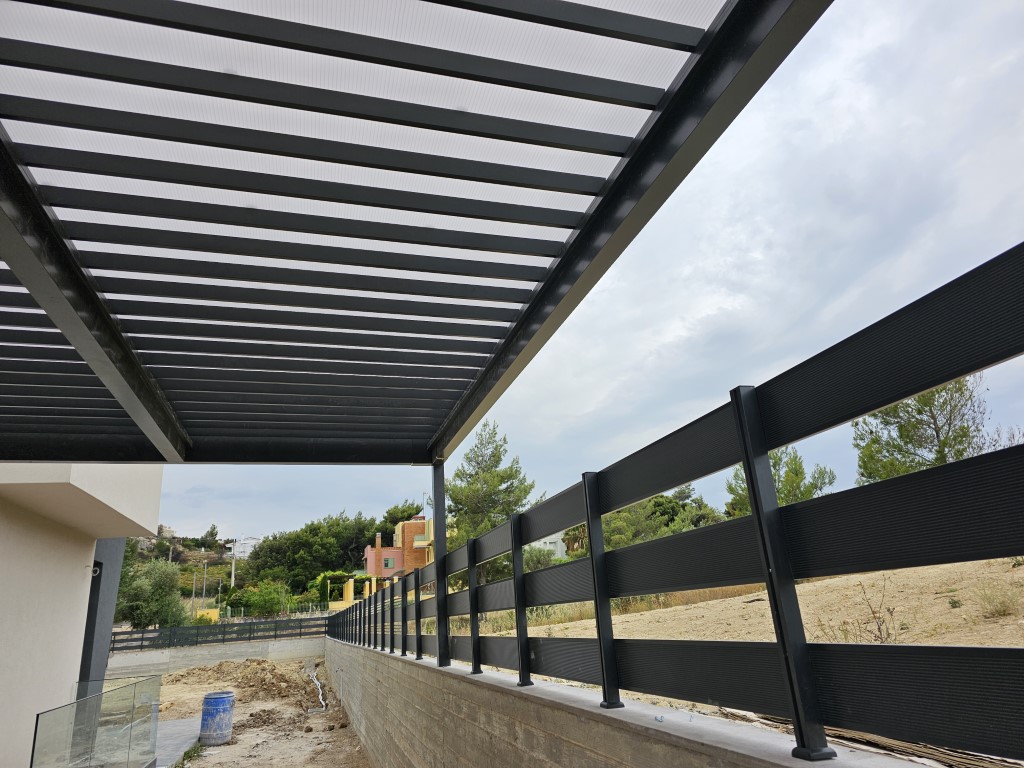 Στο έργο κατασκεάστηκν γυάλινα κάγκελα καθώς και περίφραξη από κάγκελα αλουμινίου, πέργκολα αλουμινίου καθώς και ένα μικρός αποθηκευτικός χώρος από προφίλ αλουμινίου.