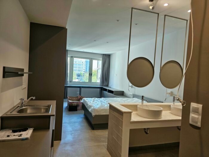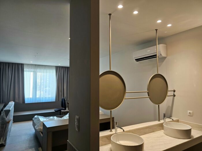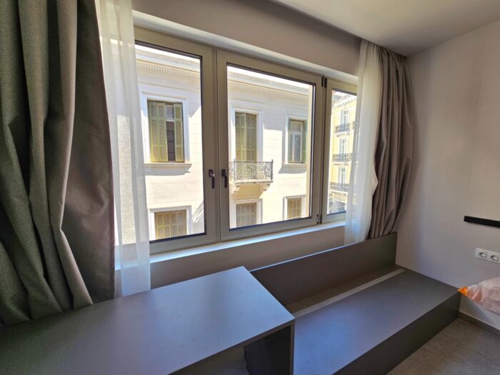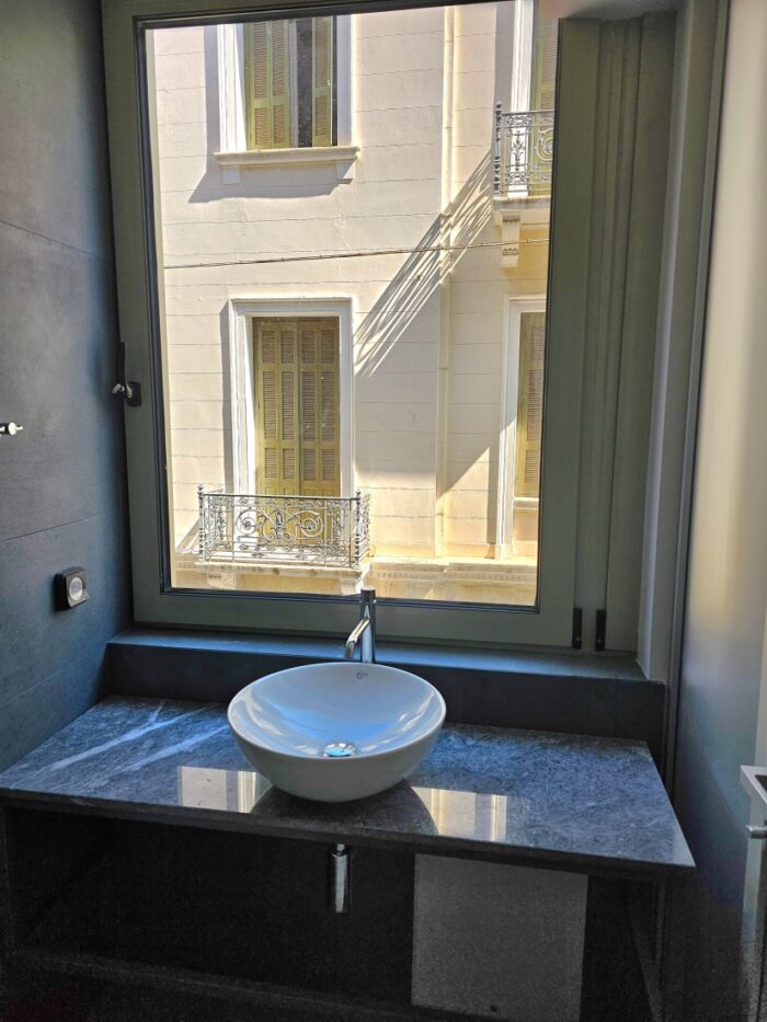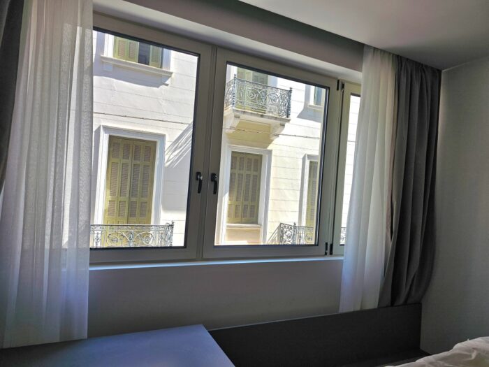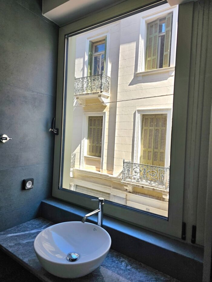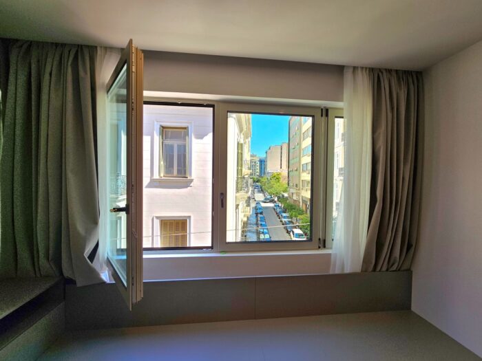 Ηχομονωτικά κουφώματα αλουμινίου για Airbnb σε χρώμα Ral 7032. Αντικατάσταση παλαιών κουφωμάτων με νέα ηχομονωτικά ενεργειακά κουφώματα αλουμινίου Europa στο κέντρο της Αθήνας. Τα παράθυρα για Airbnb για Airbnb είναι της σειράς Europa 5500 . Η σειρά των κουφωμάτων επιλέχθηκε λόγω της ηχομονωτικής δυνατότητας αλλά και της αντοχής της σε μεγάλα βάρη.