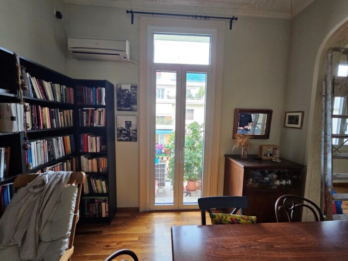 Στα αλουμίνια στο κέντρο Αθήνας διατηρήθηκε το παραδοσιάκο ύφος ,με minimal γράμμες , για να προσομοιάζουν σε παραδοσιάκα κουφώματα .